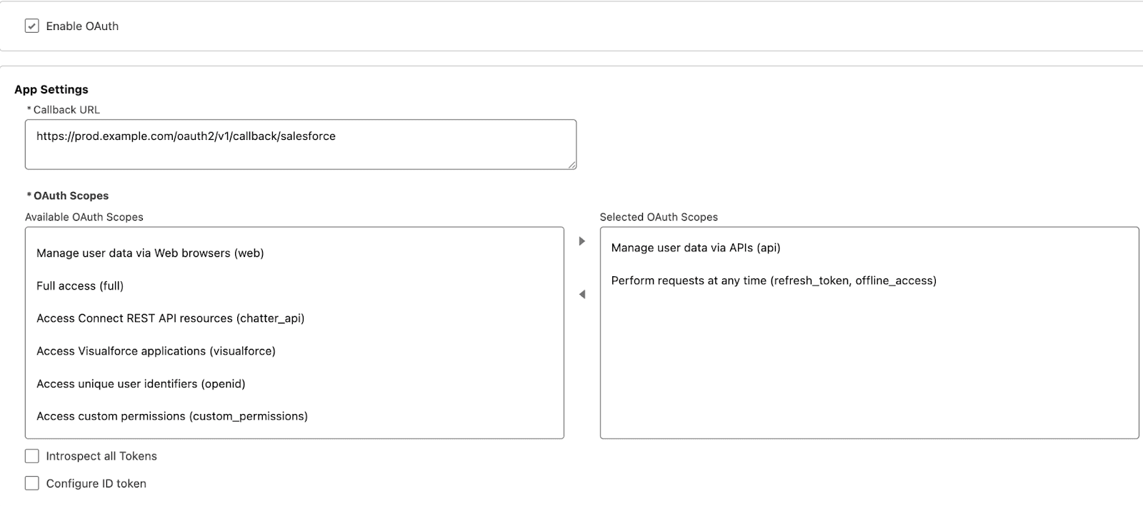 In this section, enable the OAuth settings for your External Client App (ECA). The primary configurations are the Callback URL, which acts as the redirection endpoint after successful authentication, and the OAuth Scopes, which define the app's level of access. Similar to legacy Connected Apps, it is a security best practice to apply the Principle of Least Privilege by selecting only the minimum scopes required for your integration. I'll save the details on the other settings for a future post, but the default values will serve you just fine for now.