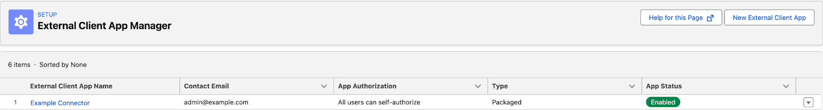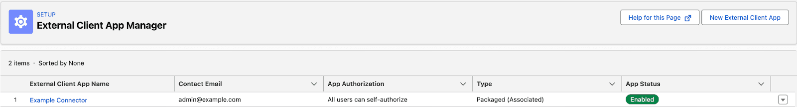 Navigate to Salesforce Setup → Apps → External Client Apps → External Client App Manager